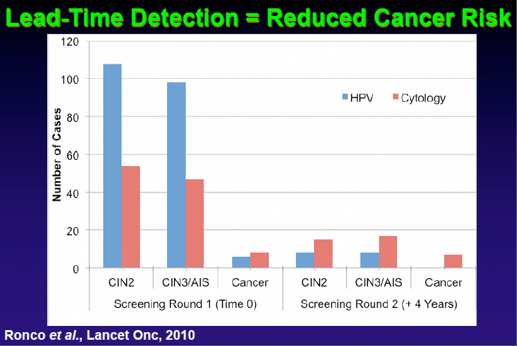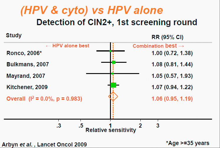 • There is no proven benefit of HPV and Pap contesting versus HPV testing alone for screening.